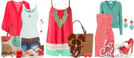 Возможно, вам понравится сочетание кораллового бледно-персикового цвета с жёлто-золотым, морковного, ализариновым, ржавым, бордовым, оливковым, лазурным, серо-голубым, джинсовым, гиацинтовым, сиреневым, белым, серым, золотым, тёплым светло-бежевым, розово-коричневым, тёмно-коричневым