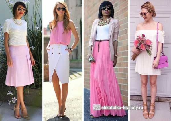 Этот оттенок розового прекрасно смотрится на блондинках цветотипа «весна». Но стоит аккуратно им пользоваться: не переполнять им гардероб, не ходить в нем на работу, и тем более на деловые встречи. Помните, сексуальность этого оттенка в его непорочности. Светло-розовое платье с грудью на выкат как раз и наводит на мысль о глупой блондинке. В стиле «скромница» юбка должна быть как минимум по колено.