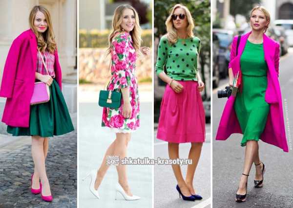 Яркий розовый и фуксия с красным создают очень активные сочетания, сочетать их очень сложно — очень редко, чей колорит это выдержит.