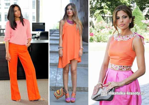 С оранжевым сочетаются теплые розовые. Яркий розовый тоже создает очень активные и яркие сочетания.