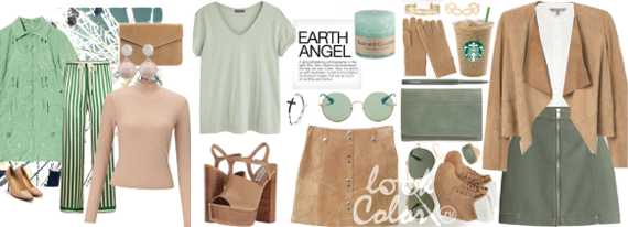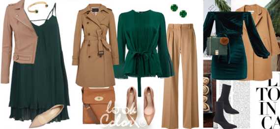 Сочетание цветов в одежде: бежевый (фото – далее) с зеленым — смотрится эффектно и естественно.