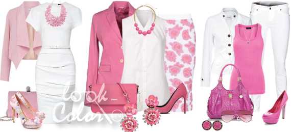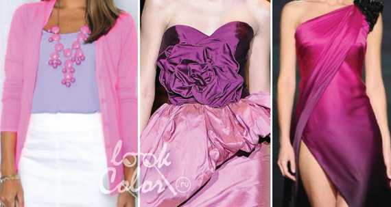 Сочетание бежевого с розовым. Нежные, теплые оттенки розового составляют пастельные гаммы с этим цветом, в то время, как лиловые тона вступают в тепло-холодный контраст, но также выигрывают от такого соседства. Чем яркие и темнее розовый, тем более выражено он доминирует в паре, сочетание от этого только выигрывает. Палитра составлена из королевского розового, закатно-розового, лилового, фуксии, малинового.