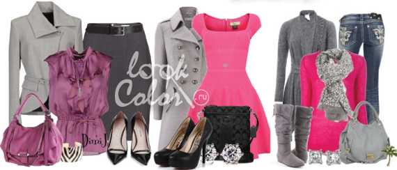 Серо-бежевый — очень подходящий оттенок для платья. Для сочетания с ним подойдут следующие цвета: лазурный, золотой, серебряный, рубиновый, аметистовый, лиловый, цвет фуксии, желтая охра, изумрудный, фиолетовый, коричневый.
