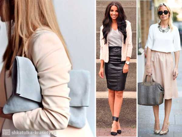 - Для офисного делового стиля подойдет сдержанное сочетание светлого бежевого верха и темного низа. Последний может быть представлен черным, серым, коричневым и даже альтернативным белым цветом.