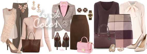Оттенки коричневого цвета прекрасно сочетаются со всем оттенками бежевого, только, чтобы ваш наряд не выглядел скучным и однообразным, лучше сочетать контрастные темно-коричневый (или средний тон) и бежевый.