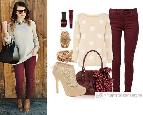 Сочетание цветов в одежде «бежевый и бордовый» считается универсальным. По отдельности такие цвета самодостаточны. А при сочетании нет никакой необходимости разбавлять этот «сильный тандем» другим цветом. Цвет марсала чарующий и глубокий. Главная его особенность — в уникальном сочетании бордового с коричневым подтоном. Этот цвет сделает любой повседневный образ особенным, подобно сицилийскому бокалу вина с одноименным названием.