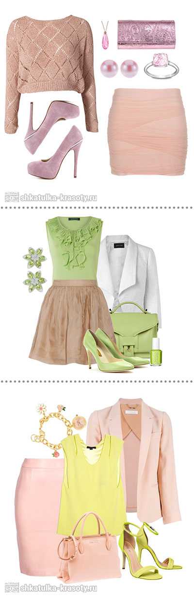 Следующее выгодное сочетание цветов в одежде: светло-бежевый и пастельные оттенки. Оно открывает широкие возможности для создания интересных цветовых комбинаций.