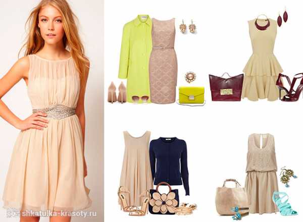 Бежевое платье может стать в вашем гардеробе одной из самых универсальных вещей, ведь его можно комбинировать практически с любыми цветами.