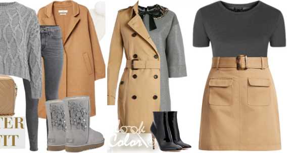 Сочетание серо-бежевого цвета в одежде смотрится очень уютно и комфортно. Оттенок серого можно подбирать в тон бежевому, а можно выбрать немного темнее.