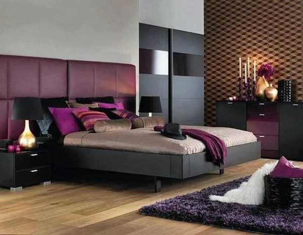 Помещение, предназначенное для уединения и сна должно приносить человеку только положительные эмоции. Для этого применяют фиолетовый цвет и модный декор. Спальню в классическом стиле можно оформить таким образом: стенки покрасить сиреневой краской, потолок сделать светлым, но не белым, а пол покрыть ламинатом такой же светлой расцветки (например, липа). Текстиль для такой спальни нужно подбирать контрастный, из плотных узорчатых тканей. Чтобы обстановка не казалась слишком приторной, несколько деталей мебели окрашивают темной краской.