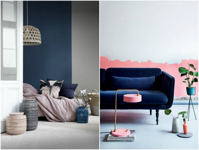 Сочетание серо-синего и розового – нежное и легкое. Предпочтительны теплые, светлые приглушенные оттенки. Чем более сложные они будут, тем гармоничнее пара.