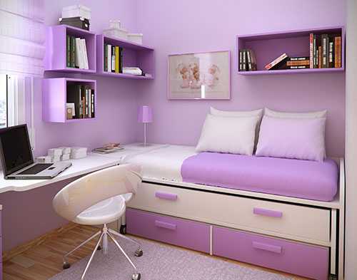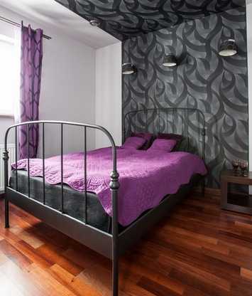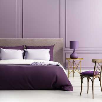 Фиолетовый идеально впишется в спальню: этот цвет обладает способностью успокаивать и настраивать на лирический лад. Однако темных оттенков лучше избегать, ведь они могут подавлять и даже вызывать депрессию. Остановите свой выбор на светлых, легких тонах — лавандовым, сиреневом, светло-лиловым. Сочетать эти тона привычнее всего с белым, серым и розовым, однако это далеко не единственный вариант: в сочетании с зеленым «фиолетовый» интерьер станет более свежим и весенним, а с желтым и коричневым — более теплым.
