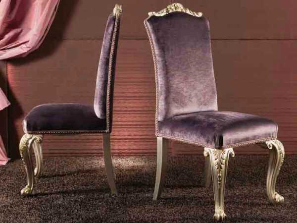 Фиолетовый и коричневый в классическом интерьере, стулья марки «OAK Industria Arredamenti»