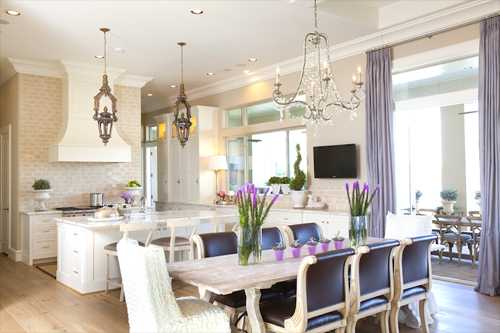 Лучше всего выглядит сиреневый цвет в интерьере больших пространств, где существует масса возможностей обыграть его воздушность. Он неравнодушен к элементам античной архитектуры, аркам и высоким потолкам.