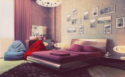 - с красным – для оформления экстравагантной спальни, а с его насыщенным оттенком – бордовым – для декора гостиной;