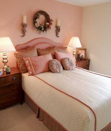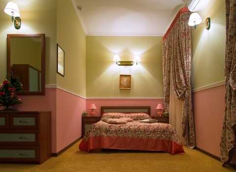 Розовый и сиреневый. Хорошо сочетается розовый с сиреневым и фиолетовым. Правильно подобранные пропорции и акценты придают интерьеру таинственность и немного романтики. Самое подходящее место для них — в спальне.