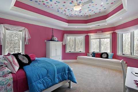 Комбинировать розовый с синим не рекомендуется — это сочетание холодное, мрачное и «грубое». А вот с голубым цветом розовый вполне способен подружиться. Однако этот дуэт, если речь идет о больших поверхностях, может получиться наивным и кукольным. Не случайно ведь розово-голубую схему часто используют для девичьих и женских спален. В гостиных эту схему можно применять для акцентирования.
