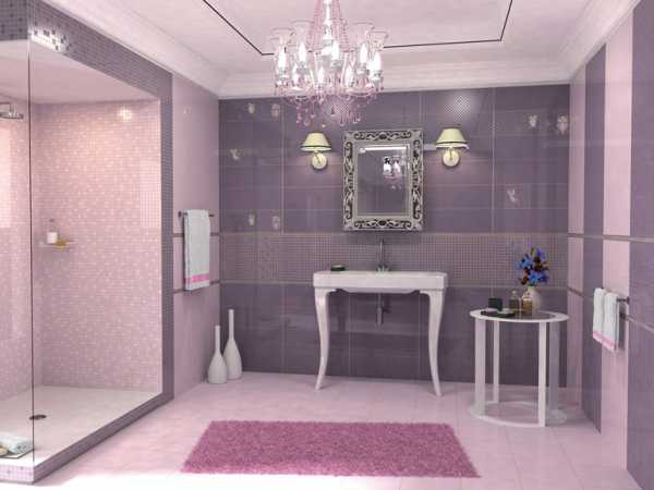 В последнее время фиолетовые ванные становятся все популярнее, часто используют фиолетовую плитку: этот цвет является неплохой заменой надоевшим синему и голубому. Для создания атмосферы комфорта и расслабленности следует выбирать светлые тона: лавандовый, сиреневый, светло-лиловый. Удачной идеей является комбинация этих тонов между собой, а также со снежно-белым, розовым и светло-желтым. Более темные тона — баклажановый, аметистовый, черничный — менее удачны в качестве основного тона. Однако сантехника этих оттенков удачно впишется в белые или сиреневые стены.