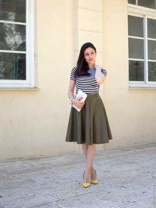 Невероятно свежее и легкое решение на каждый день, для работы, отдыха или романтического свидания. Голубой джемпер или рубашка плюс черная юбка и классические лодочки или ботильоны и наряд готов!