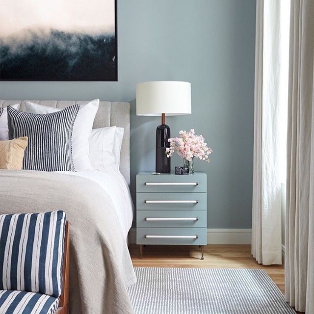 Когда дело доходит до выбора краски, ищите синий с оттенком умбры для теплоты и, что немаловажно, с мягким серым оттенком. Они создадут сплоченный диалог с другими элементами серого цвета в схеме, чтобы общий вид выглядел сбалансированным и гармоничным.
