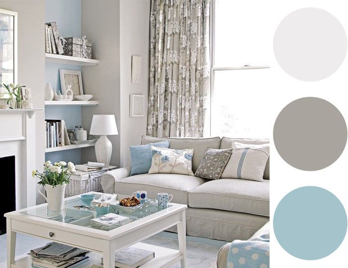 Сочетание в интерьере голубого и серого: Сочетание голубого цвета с другими цветами в интерьере гостиной комнаты