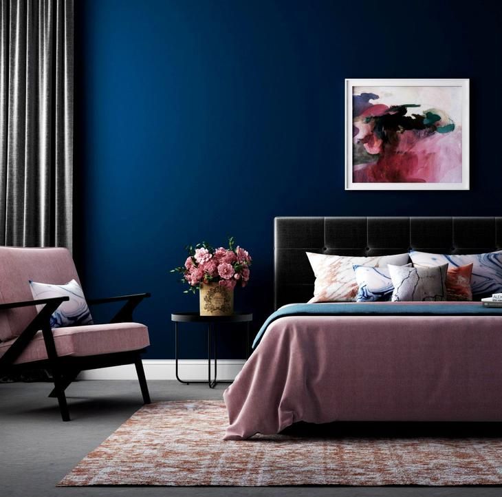 Насыщенный темно-синий цвет может мгновенно принести манящее тепло и не перегрузить комнату».