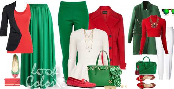 Составляя подобное сочетание, лучше основным цветом выбирать зелёный. Ведь красный, увы, идёт далеко не всем. Лучше всего он смотрится на девушках цветотипа Весна , сочетаясь с золотистым тоном кожи, и Зима , поддерживая сильный природный контраст во внешности.