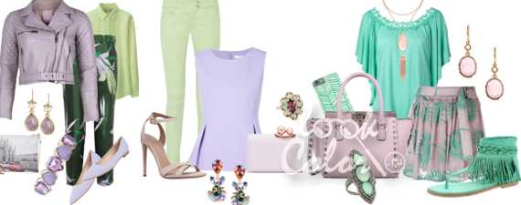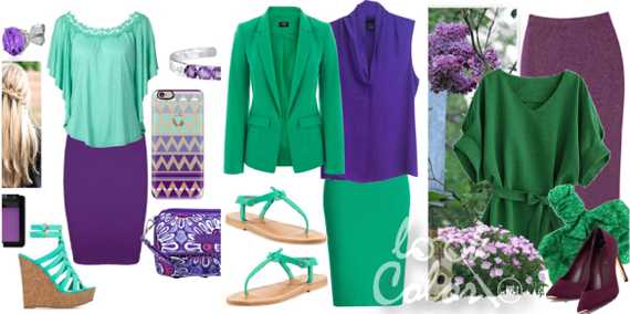 Сочетание фиолетового с зеленым в одежде