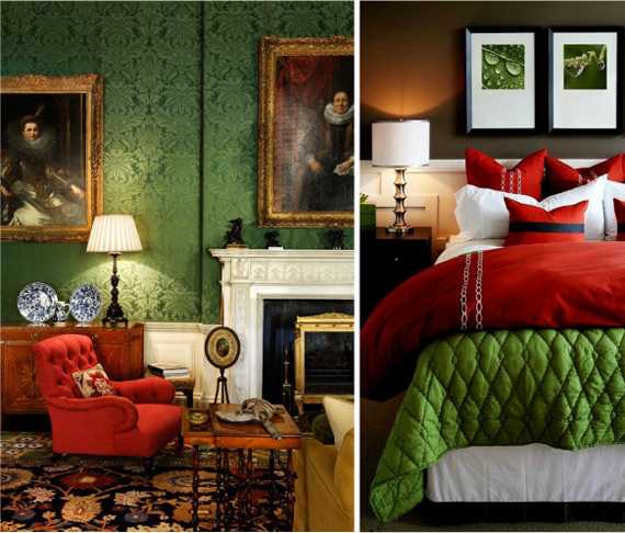 Красный и зеленый в интерьере – это вечная домашняя весна. В таких интерьерах неплохо смотрятся диваны с множеством подушек, картины с весенним пейзажем, коврики и ковры сдержанных тонов. Красный и зеленый цвета предпочтительны для кухни, гостиной и детской, а так же для фаст-фудов, детских садов и кафе, рассчитанных на молодежь.