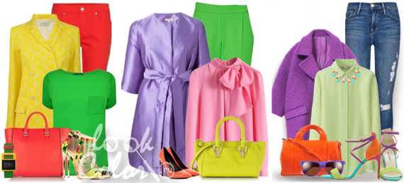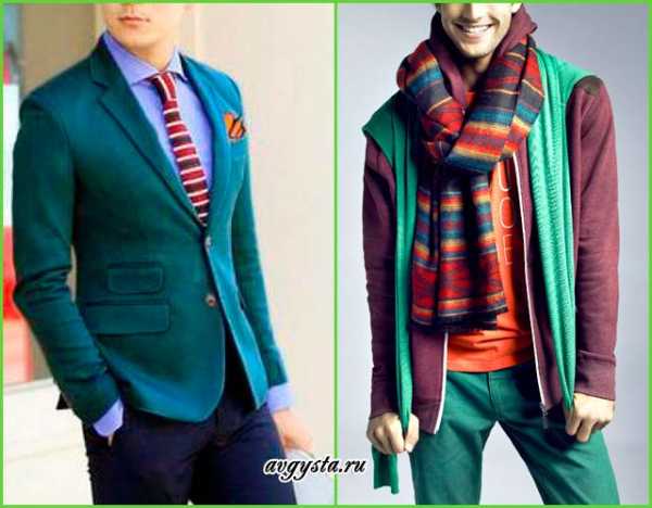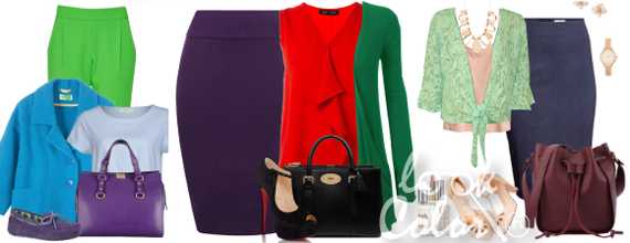 И, напоследок, я приберегла самые смелые варианты. Одежду красного и зеленого цветов можно сочетать с разными оттенками синего или желтого. Если вы решитесь на такой смелый эксперимент, то восторженные взгляды окружающих вам гарантированы.
