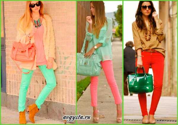 Например, с зелеными брюками смело надевайте красный жакет или футболку. При желании можете «поиграть» цветами верха: под яркую кофту используйте удлиненный топ на один-два оттенка светлее. Усилить красный помогут босоножки или туфли, подобранные в тон.