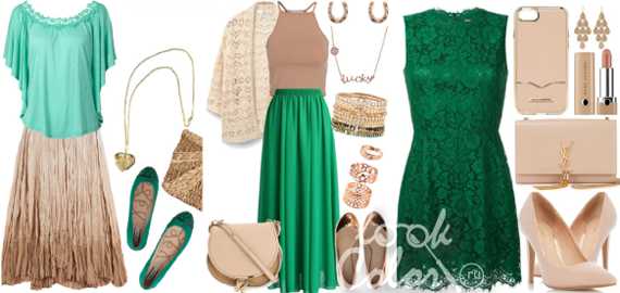 Сочетание в одежде: бежевый и зеленый