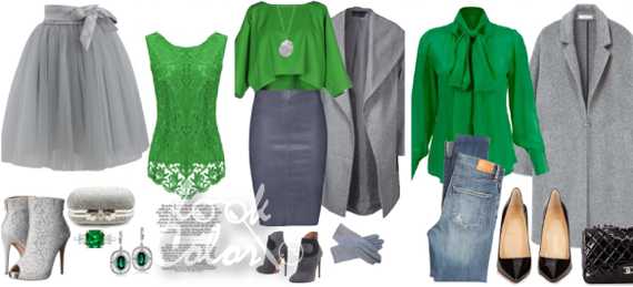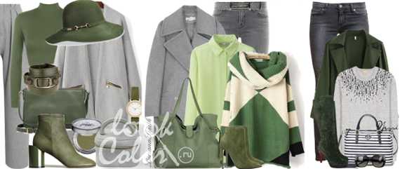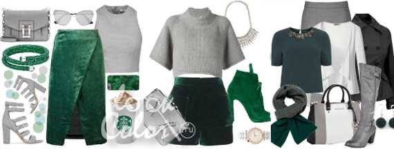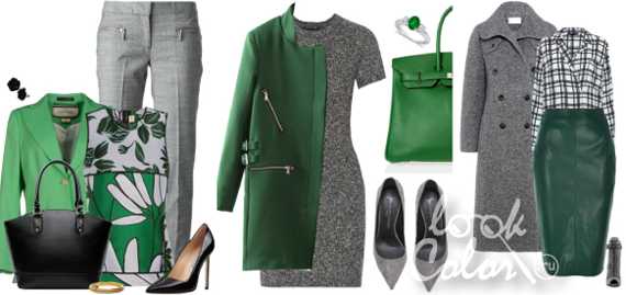 Как серый и зеленый сочетается в одежде