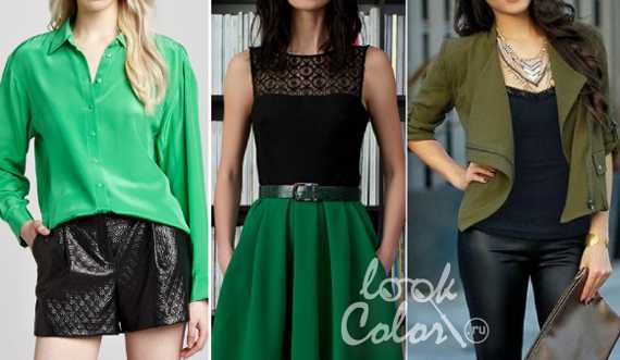 Сочетание черного и зеленого в одежде