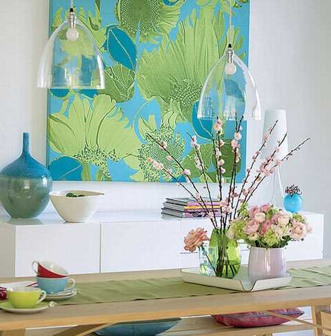 Бледно-зеленый, ярко-зеленый рядом с ярко-розовым, фуксией становятся энергичными.