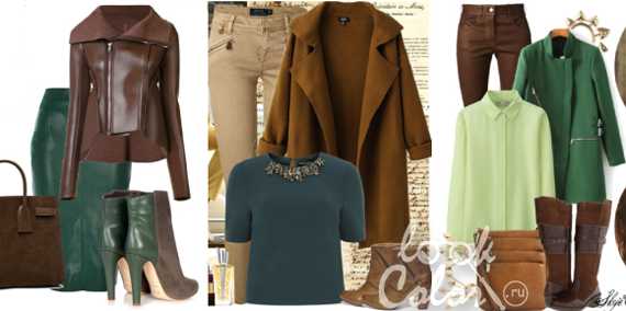 Сочетание цветов: зеленый и коричневый в одежде