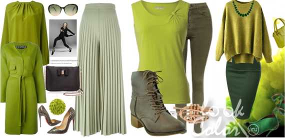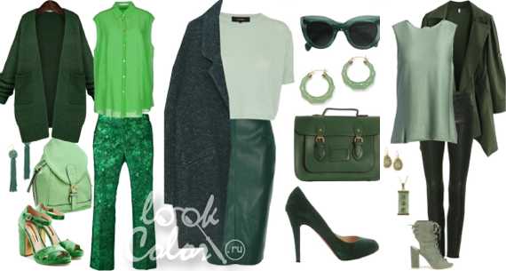 Сочетание зеленого с оттенками свой гаммы в одежде