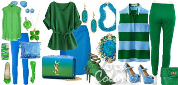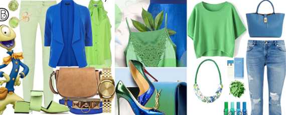 Сочетание цветов: синий и зеленый в одежде