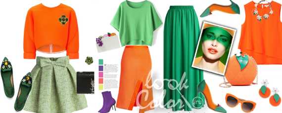 Зеленый и оранжевый — удачные сочетания в одежде