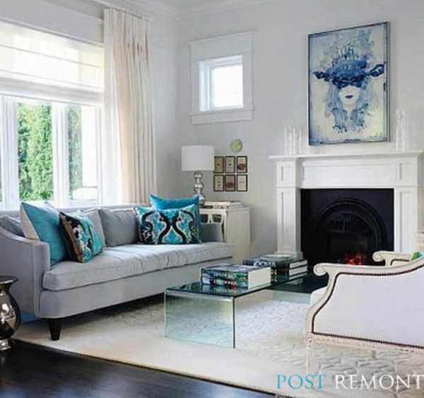 Сочетание серого цвета в интерьере с бирюзовым и синим