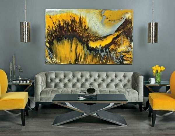Отличное дизайнерское решение создать невероятный интерьер с помощью ярко-желтой картины, что станет акцентом.