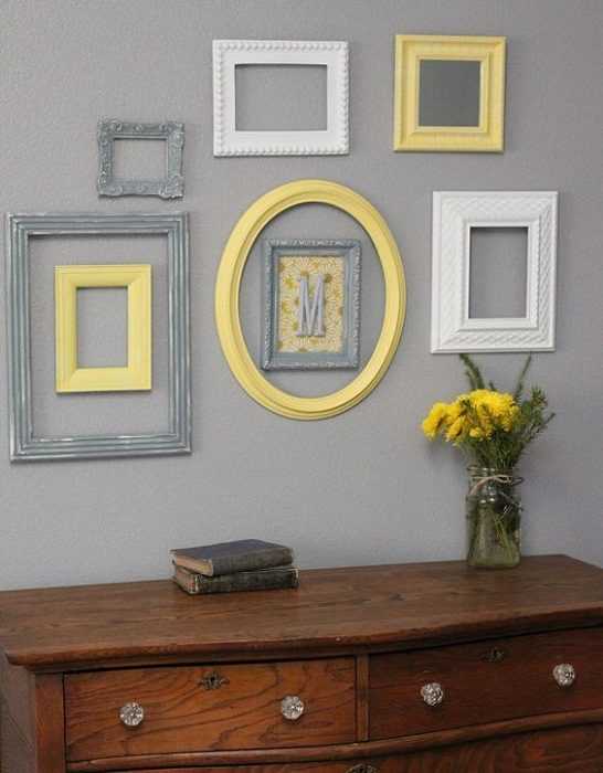 Преобразить стены в любой из комнат возможно благодаря кремовым, желтым и серым рамкам, что порадуют глаз и понравятся точно.