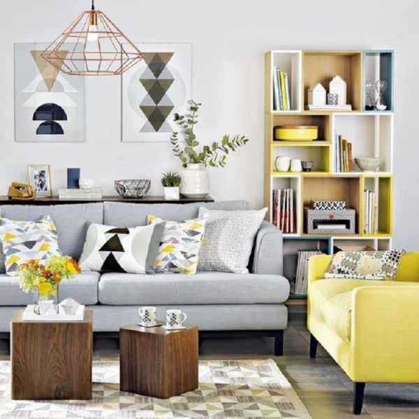 Очень красивое решение для преображения гостиной в желто-серых тонах, что по максимуму вдохновит.