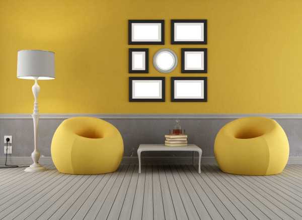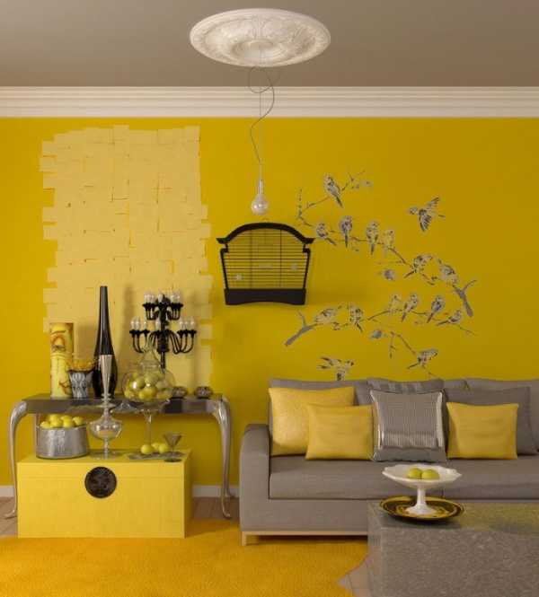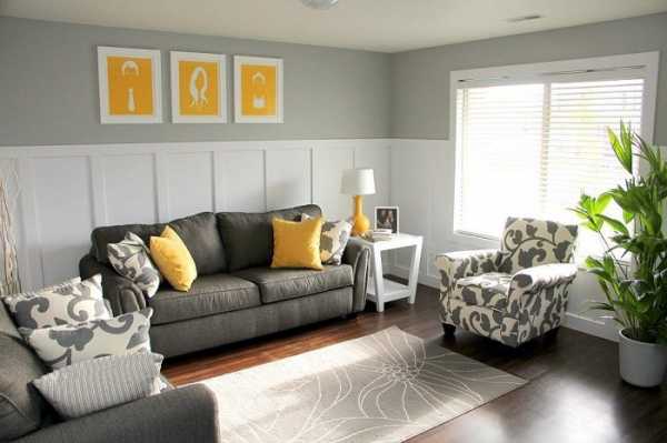Сочетание желтого и серого в интерьере