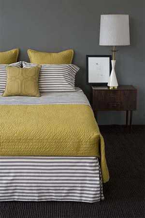 Потрясающий серо-желтый интерьер спальной, которая вдохновит еще на большие эксперименты и точно понравится.