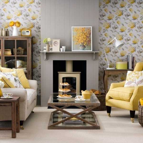 Правильные сочетания цветов при оформлении желтой гостиной