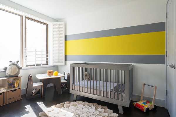 Если вы не заинтересованы в жёлтом как в основном цвете, это не проблема. Существует множество других способов добавления этого цвета в дизайн комнаты для вашего малыша. Один из них – обратить внимание на серый как на доминирующий в палитре. Его же «напарник» используется в качестве поддержки.