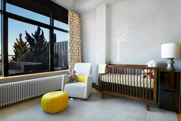Сочетание жёлтого и серого в интерьере детской