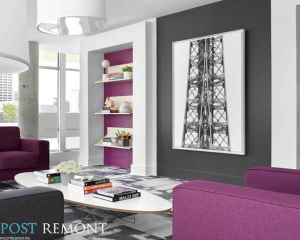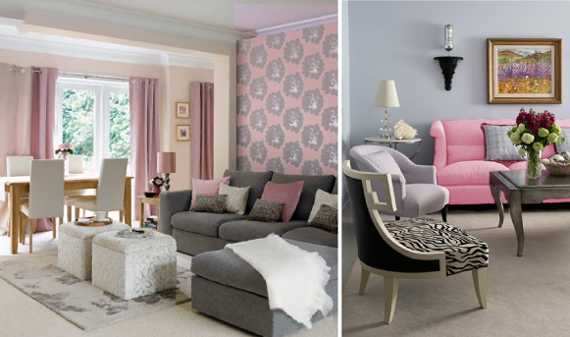 Кроме этого сочетание серого цвета с розовым отлично смотрится в интерьере зала.