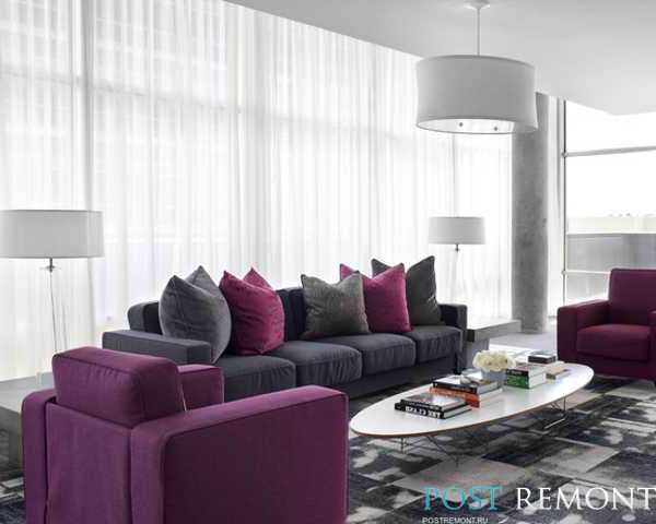 Сочетание серого с розовым и фиолетовым